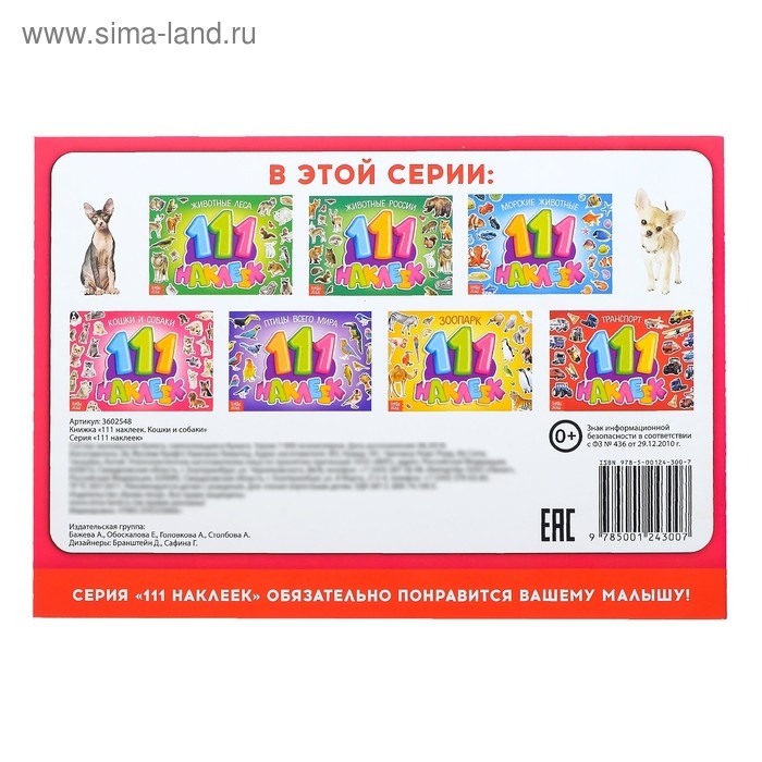 В альбоме представлено более 100 наклеек с красочными изображениями кошек и собак разных пород. Яркие картинки тренируют визуальное восприятие малыша, память и воображение.