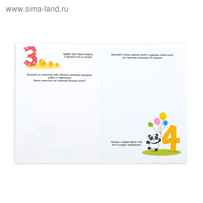 На каждой странице находятся задания, где необходимо приклеить картинки с соответствующими персонажами или их определённое количество. Упражнения положительно влияют на развитие мелкой моторики, внимания, речи и расширение кругозора.