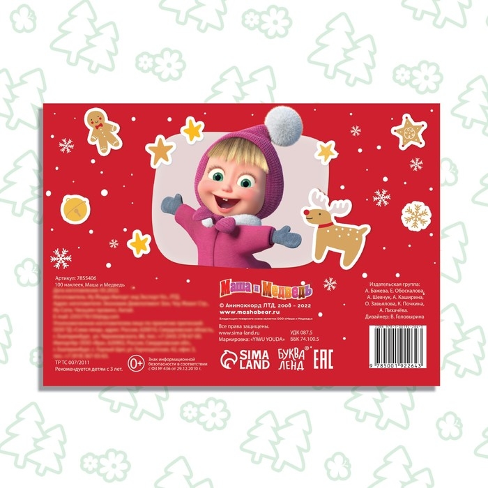 - В альбоме представлено 100 тематических наклеек с красочными изображениями Маши, Медведя и других героев полюбившегося мультфильма.