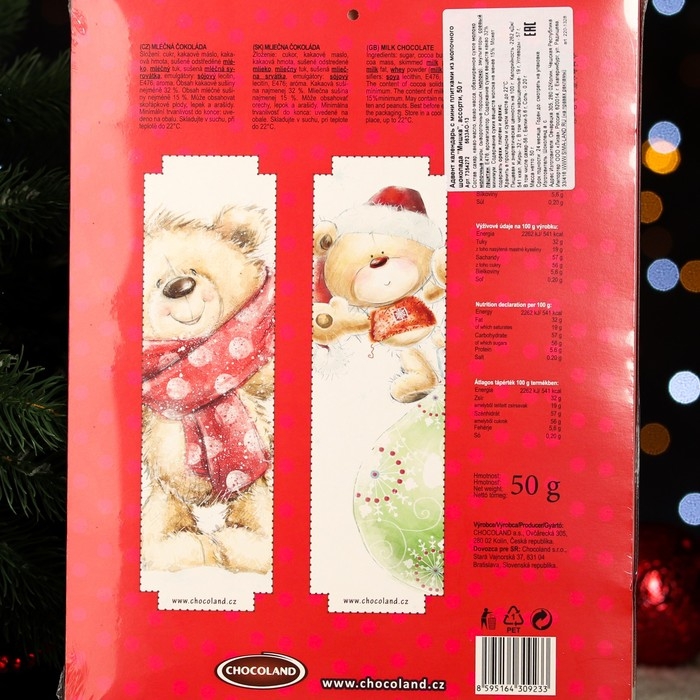 Адвент календарь с мини плитками из молочного шоколада "Мишка" ассорти, 50 г, Новый год
