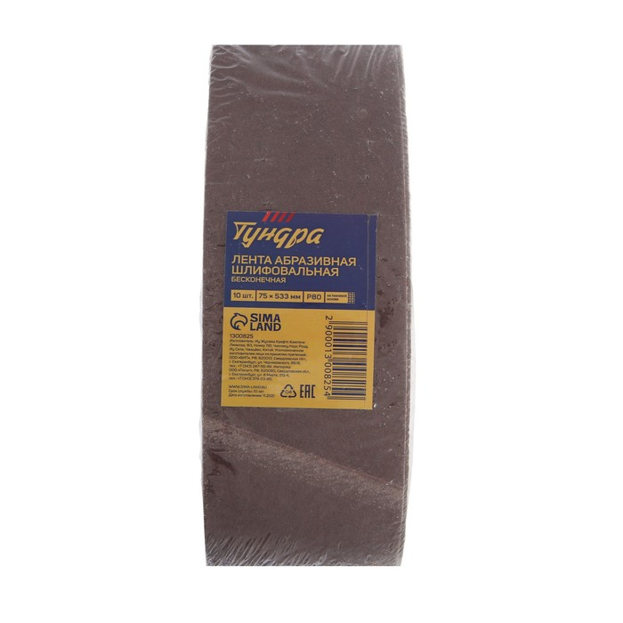 Лента абразивная бесконечная ТУНДРА, на тканевой основе, 75 х 533 мм, Р80, 10 шт.