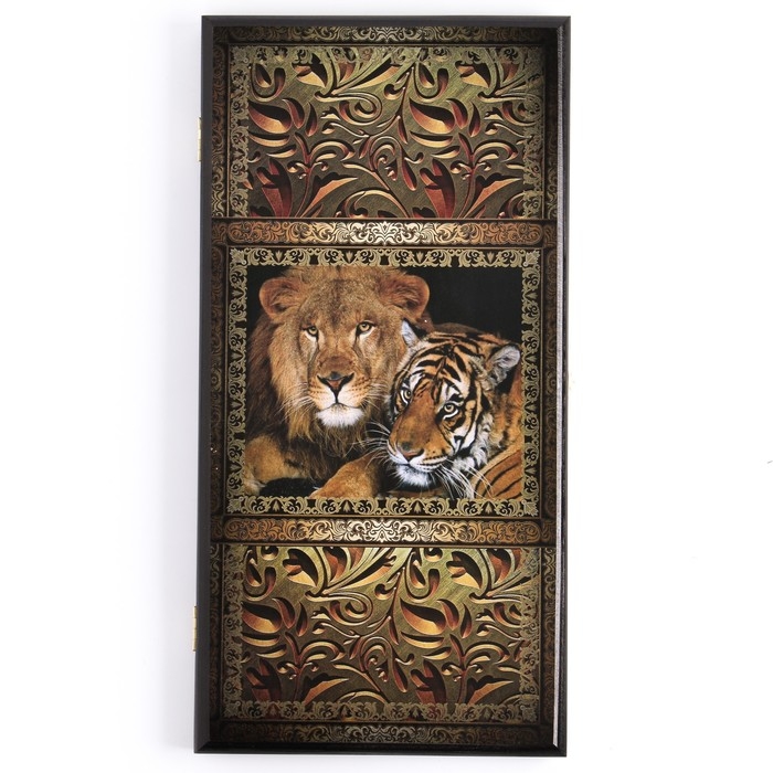 Нарды деревянные большие, настольная игра "Лев и тигр", 50 x 50 см, с шашками