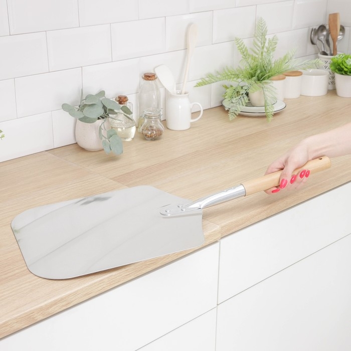 Лопата для пиццы из нержавеющей стали «Общепит», 66×30,5×2 , полотно 35,5х31 см, толщина 1,5 мм