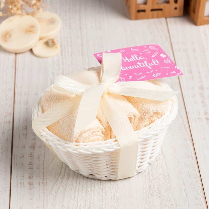 Набор махровых декор. салфеток Этель "Весеннее настроение"30х30см-3шт, цв.молочный