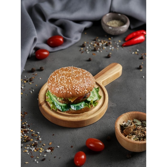 Доска для подачи Adelica «Бургерная», с ручкой, 20×13×1,8 см, берёза