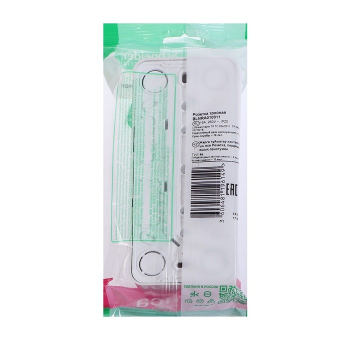 Розетка тройная SE Blanca, 16 А, 250 В, накладная, с з/к, IP20, белая, BLNRA010311