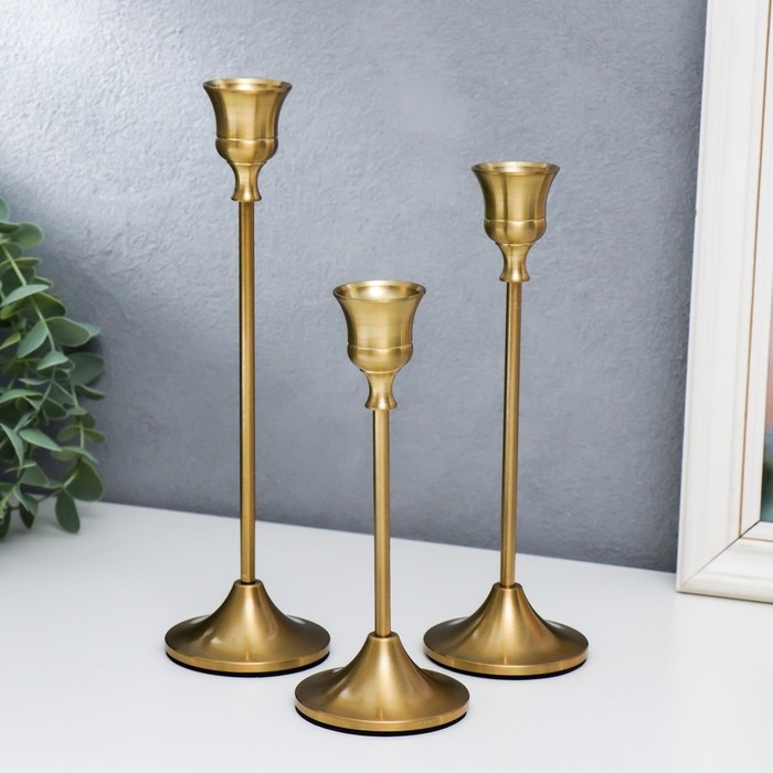 Подсвечник металл "Женева" набор 3 шт золото 7х7х20, 7х7х23, 7х7х25,5 см