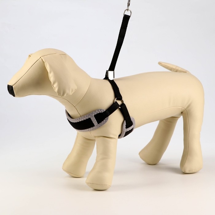 Комплект мягкая шлейка, поводок 120 х 1 см с вертлюгом, S, ОШ 26-67 см, ОГ 26-67 см,чёрный