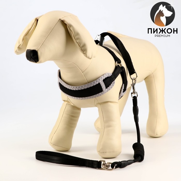 Комплект амуниции с мягкой шлейкой, M, поводок 120 х 1,5 см, ОШ 26-48 см, ОГ 26-48 см, серый