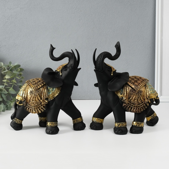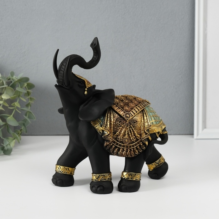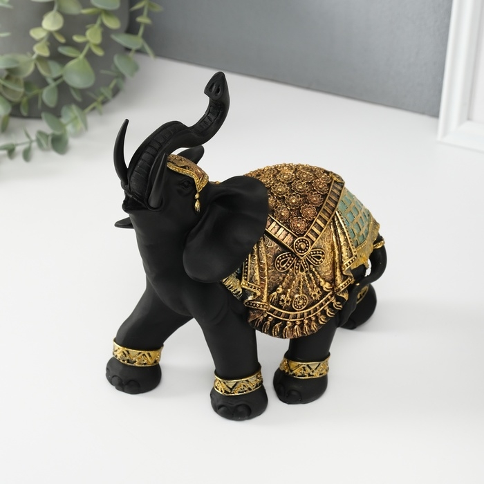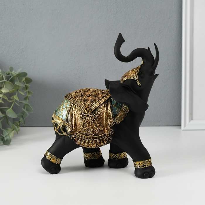 Сувенир полистоун "Чёрный слон в золотой богатой попоне" МИКС 22х10х18,8 см