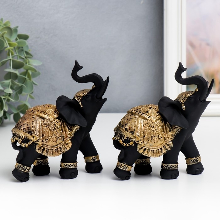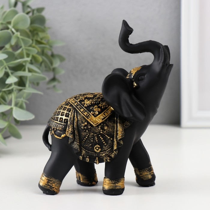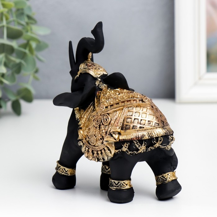 Сувенир полистоун "Чёрный слон в золотой богатой попоне" МИКС 14х6х12,6 см