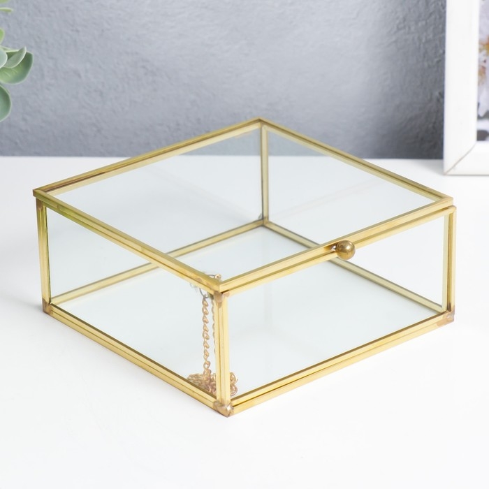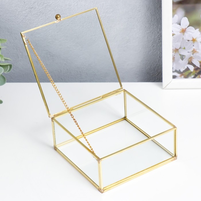 Шкатулка стекло с металлическим каркасом "Квадрат с гранями" золото 5х12х12 см