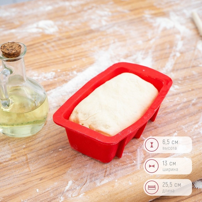 Форма для выпечки Доляна «Хлеб», силикон, 25,5×13×5 см, внут.размер 20,5×11 см, цвет красный