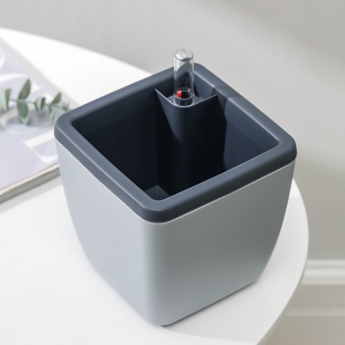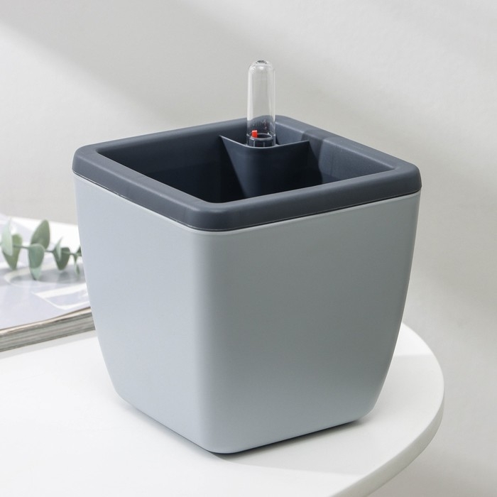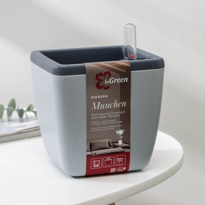 Кашпо с автополивом Munchen, 1,5 л (850 мл), 13×13 см, h=16,8 см, цвет серый