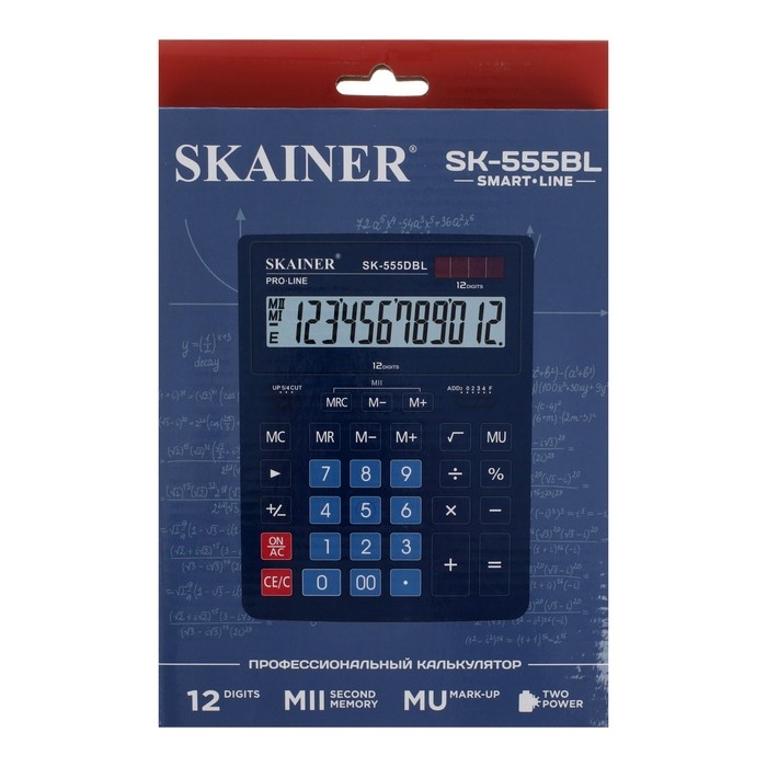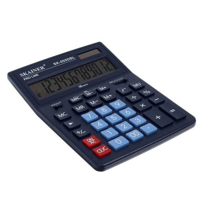 Калькулятор настольный большой, 12-разрядный, SKAINER SK-555BL, 2 питание, 2 память, 155 x 205 x 35 мм, синий