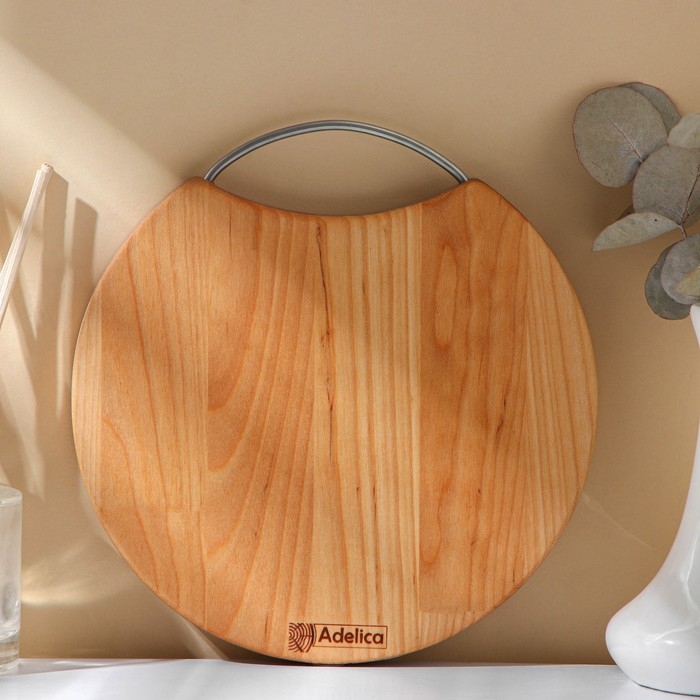 Доска разделочная с металлической ручкой Adelica, d=20×1,8 см, пропитана минеральным маслом, берёза