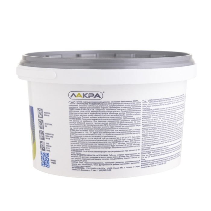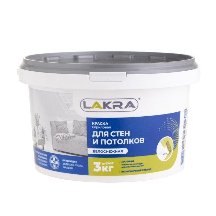 Краска водно-дисперсионная ЛАКРА для стен и потолков белоснежная 3кг