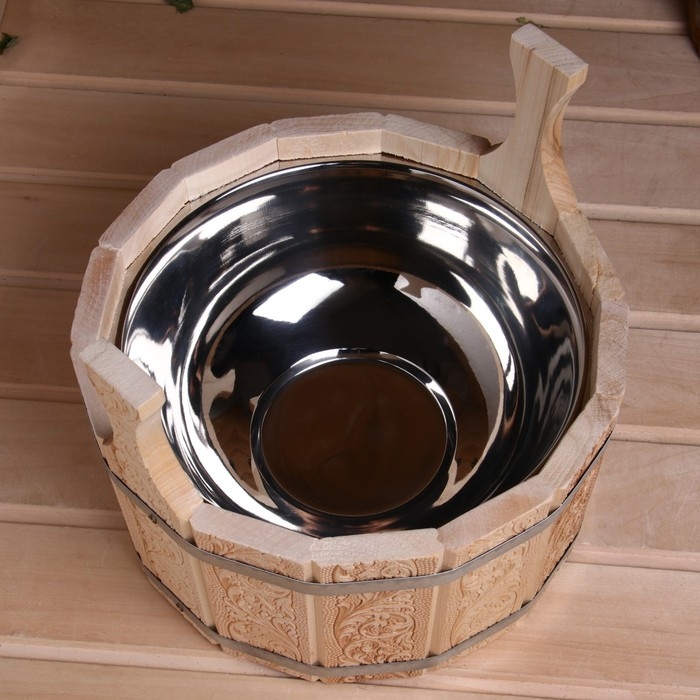 Шайка-таз из липы, 5 л, нержавеющая вставка