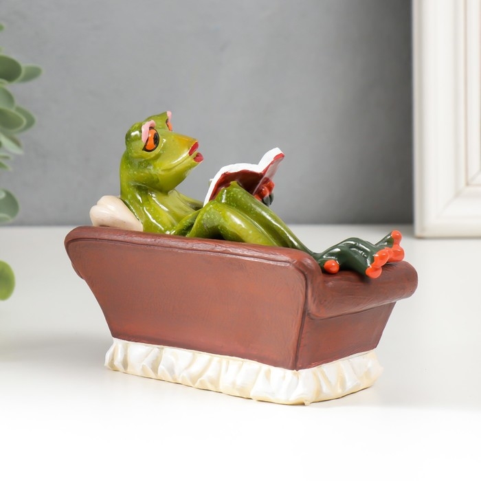 Сувенир полистоун лак "Лягуха отдыхает в кресле с газетой/кружкой" МИКС 10,5х14х6 см