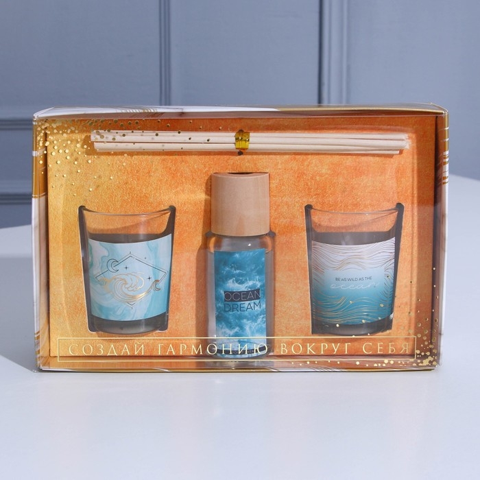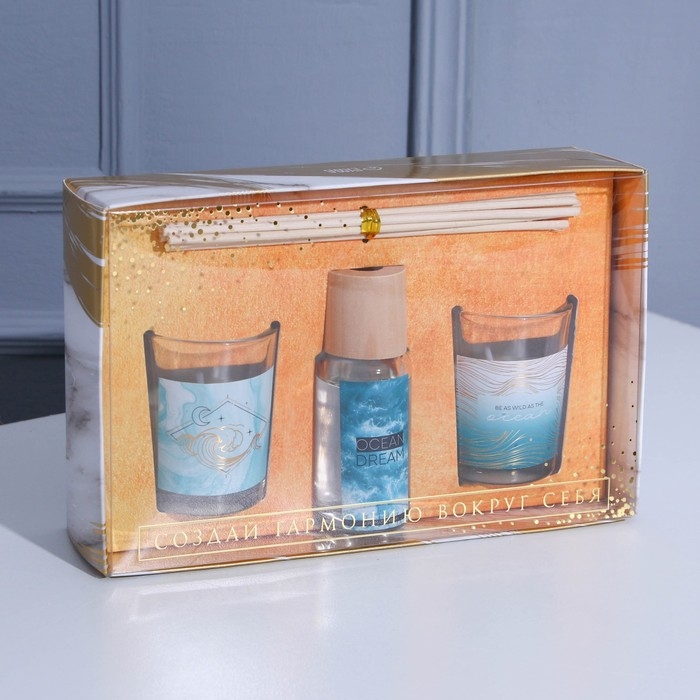 Диффузор ароматический и свечи интерьерные «OCEAN DREAM», аромат океан, 20 х 12,5 х 5 см.
