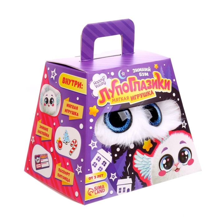 Знакомьтесь, это новогоднее чудо — Снежок, мягкий зверёк из серии «Лупоглазики». В набор вместе с ним входят аксессуары, с которыми играть будет ещё интереснее.