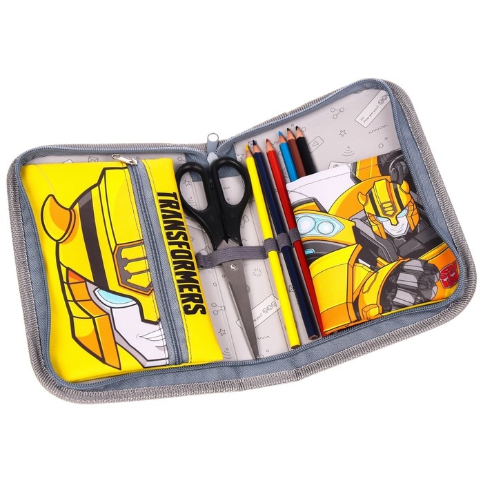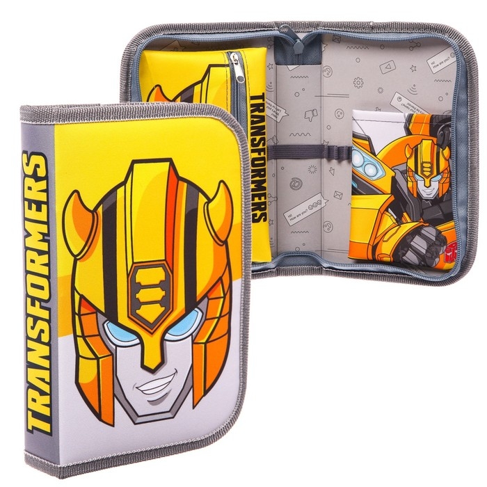Пенал каркасный, 1 секция, 140х210х40 мм, откидной карман, тканевый, Трансформеры