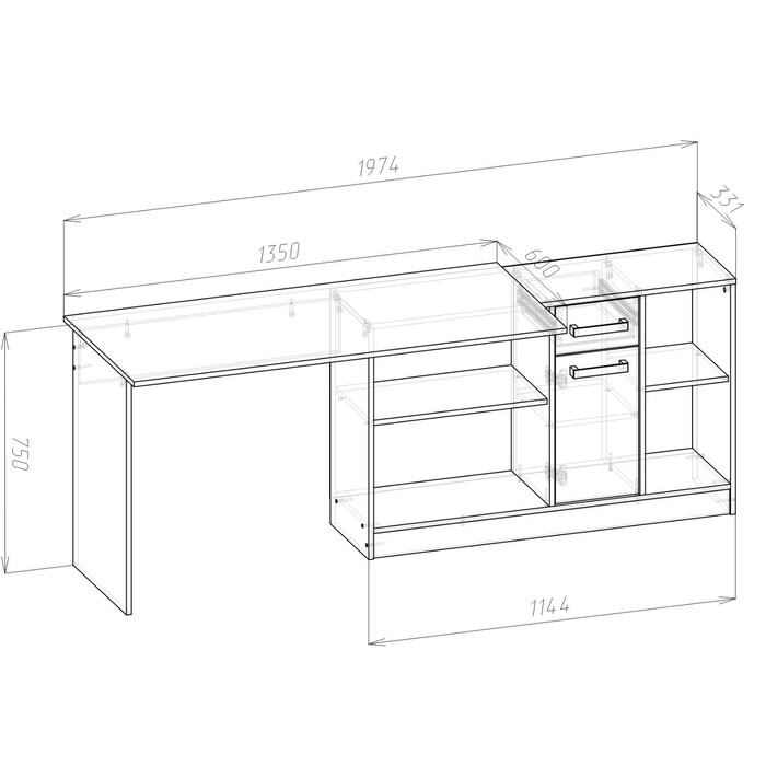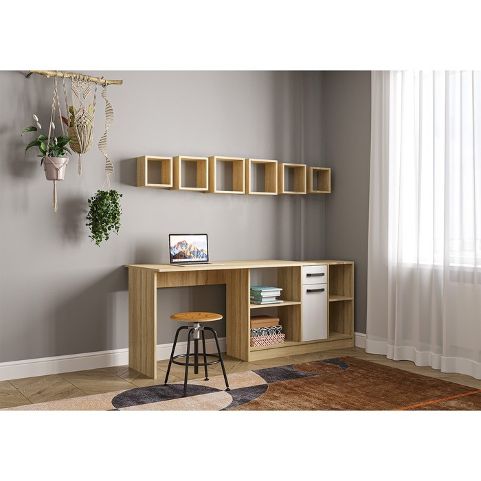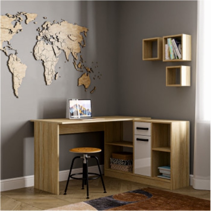Стол письменный СПЛ-1 – это функциональное и стильное дополнение вашего рабочего места. Данная модель стола практична тем, что трансформируется из углового положения в прямое. Он оснащен: открытыми полками, выдвижным ящиком, и ящиком с дверцей.