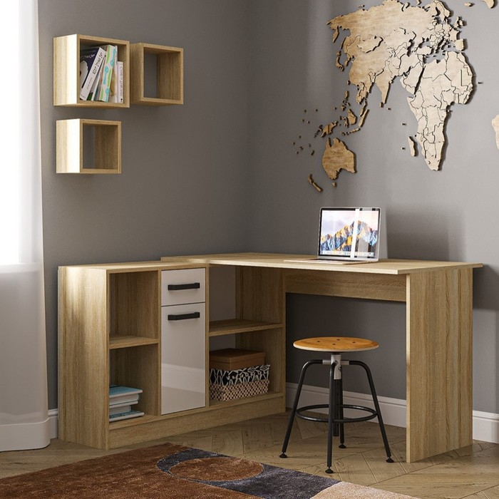 Стол письменный СПЛ-1, 1350х1238х750, Дуб сонома/Белый глянец