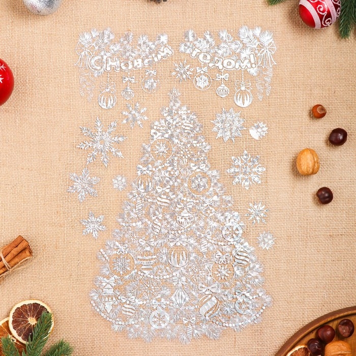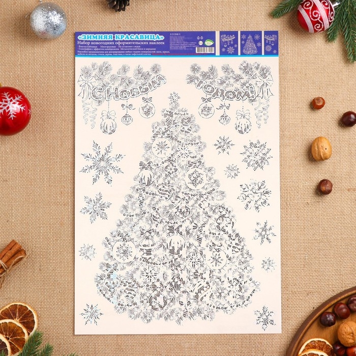 Набор наклеек оформительский "Зимняя красавица" голографическая фольга, 49,3х33,6см