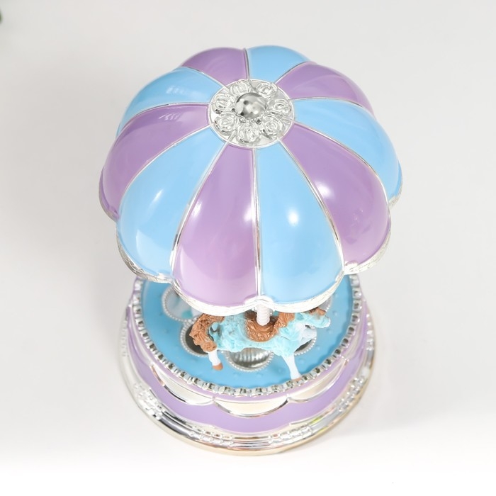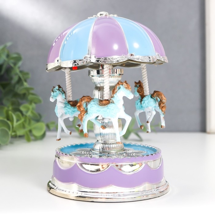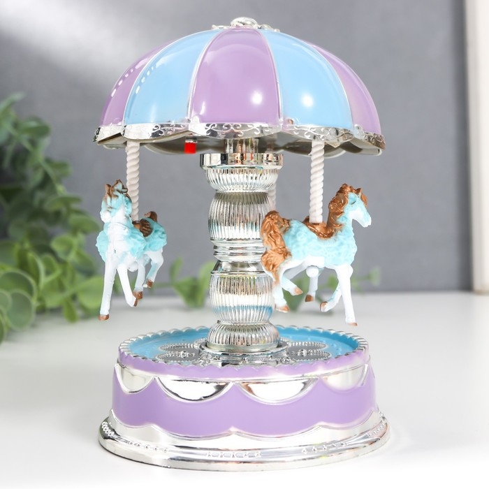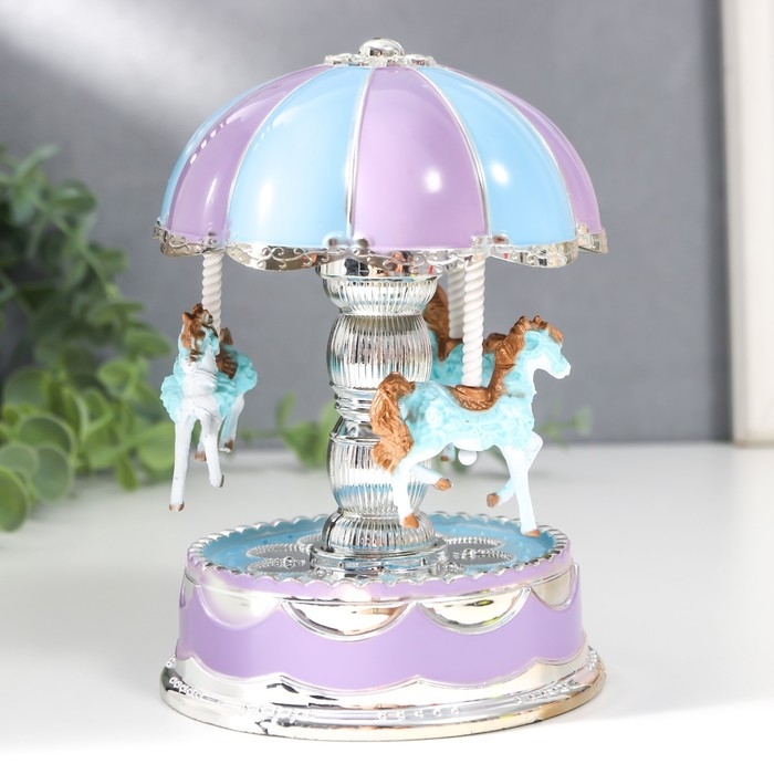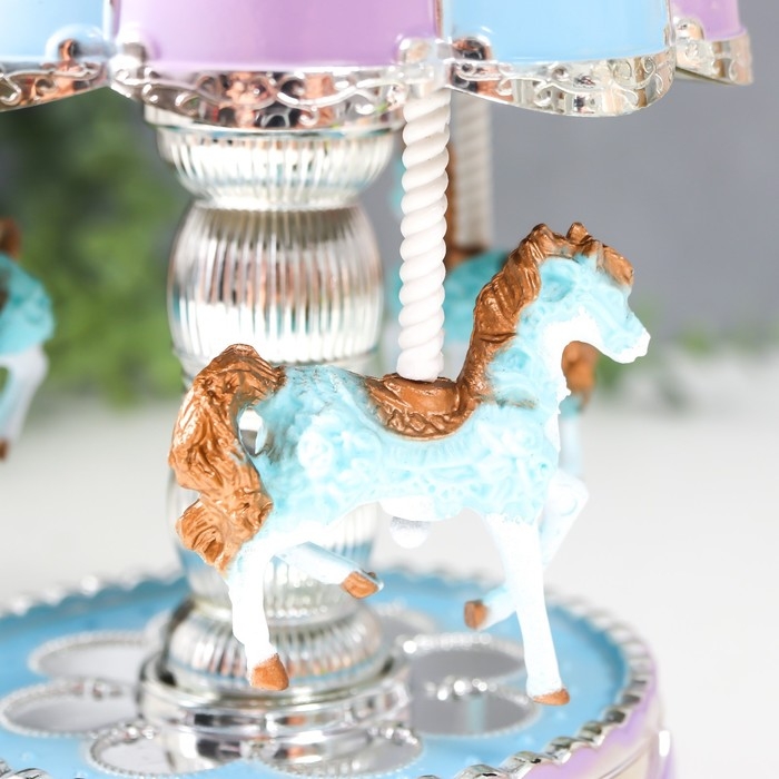 Сувенир музыкальный механический свет "Карусель - кони" голубая 10,5х10,5х15 см