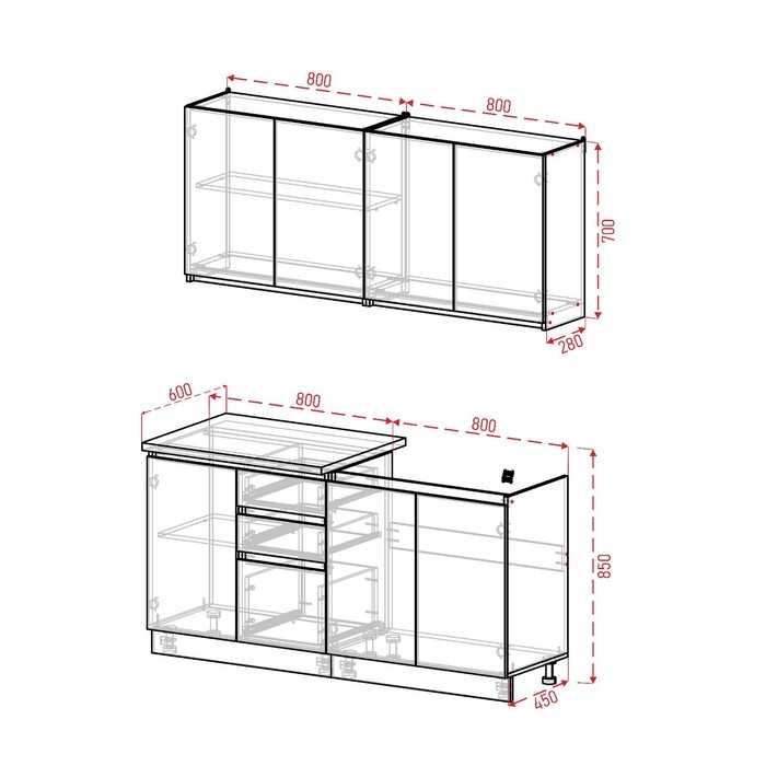 Кухонный гарнитур Стиль 1600, Белый/Белый