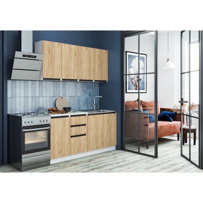Кухонный гарнитур Стиль 1600, Дуб крафт золотой/Белый/Черный