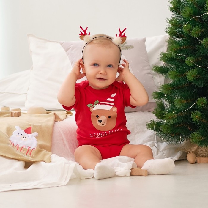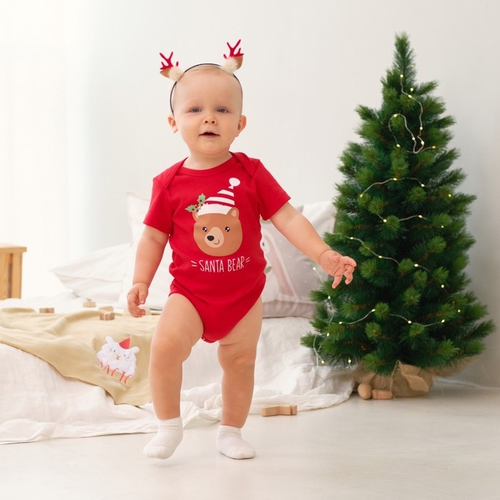 Боди детское Крошка Я «Новогодние зверята», рост 80-86 см, цвет красный