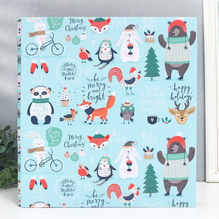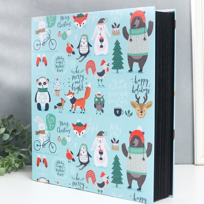 Фотоальбом на 1000 фото 10х15 см "Лесные зверята в зимнем лесу" кожзам 36х33,5х6,5 см
