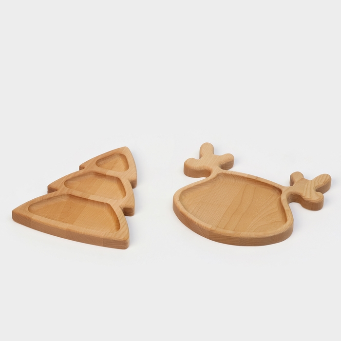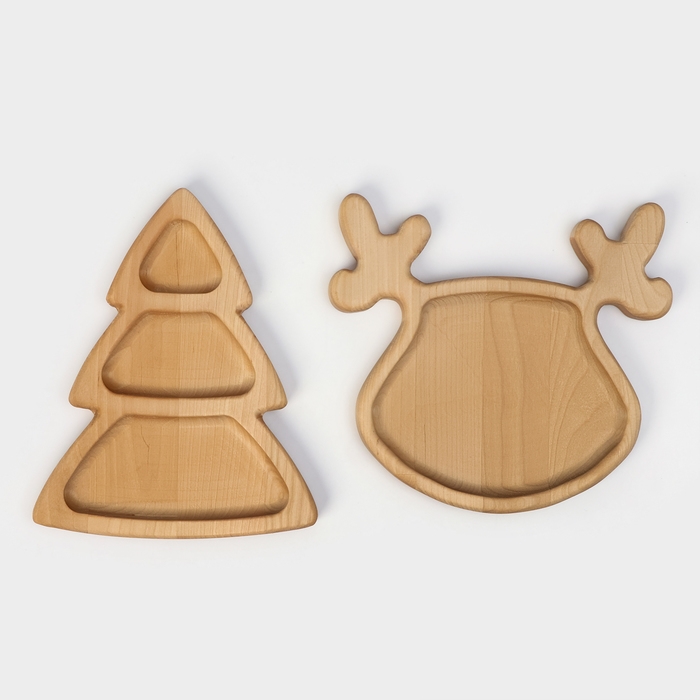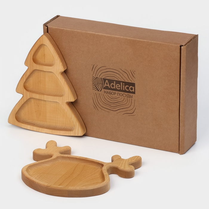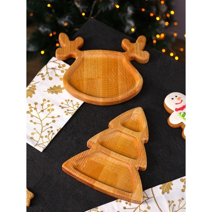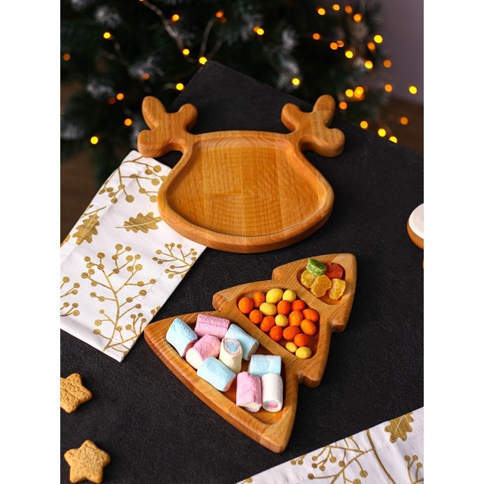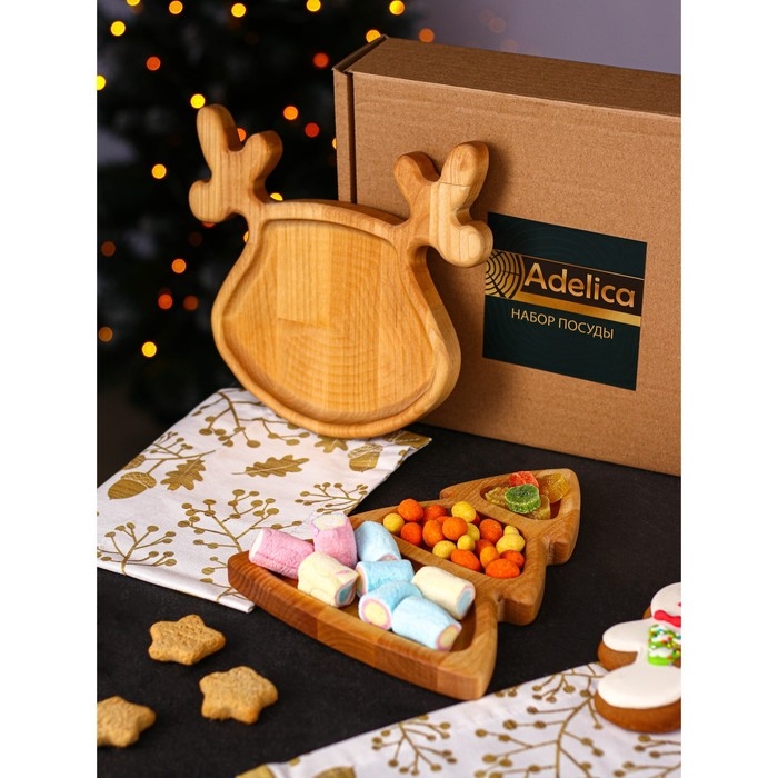 Подарочный набор посуды Adelica «Новогодний олень», менажница ёлка 22×18 см, тарелка 22×20 см, берёза