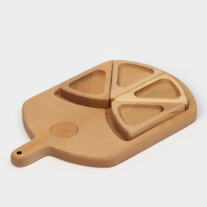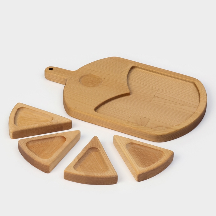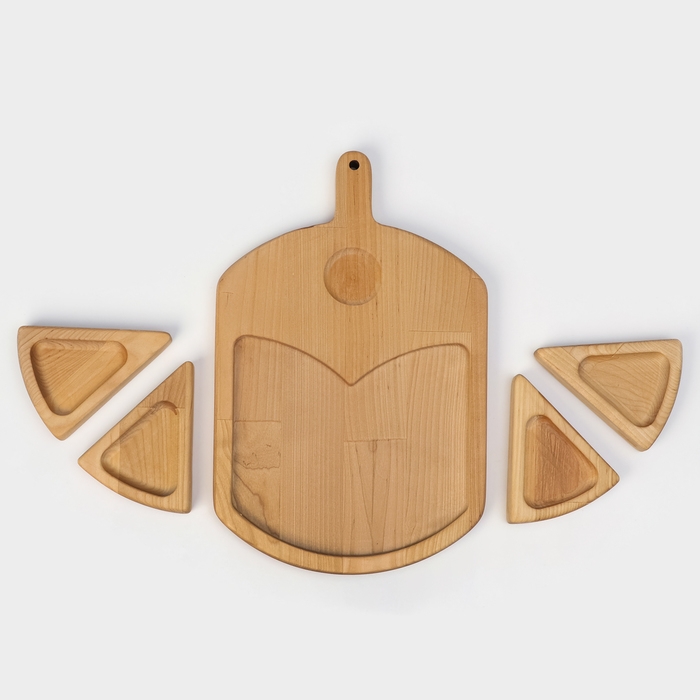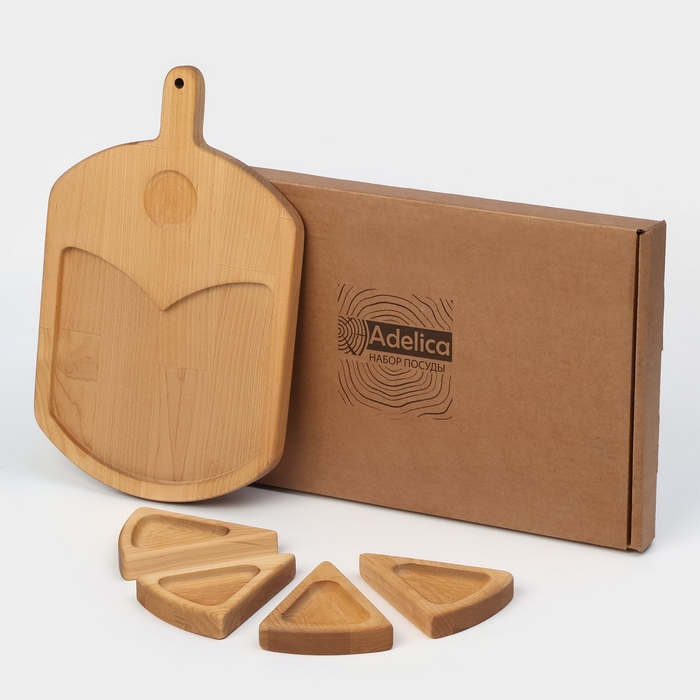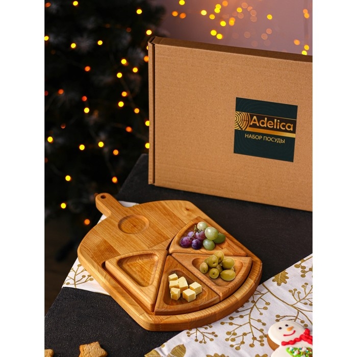 Подарочный набор деревянной посуды Adelica «Сырная мозайка», доска разделочная 35×22 см, менажницы 4 шт, 12,5×9 см, берёза