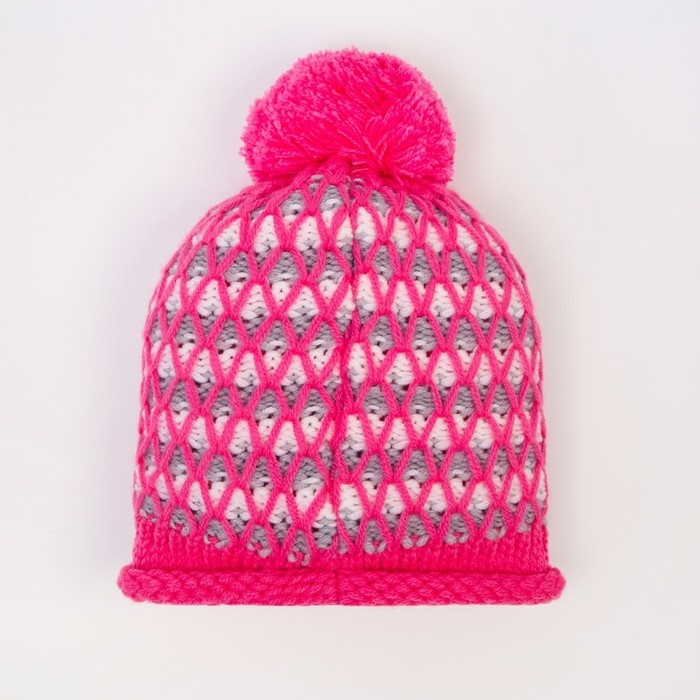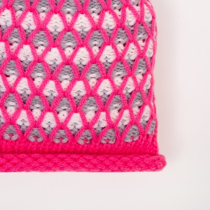 Шапка для девочки, цвет ярко-розовый/светло-серый, размер 52-54