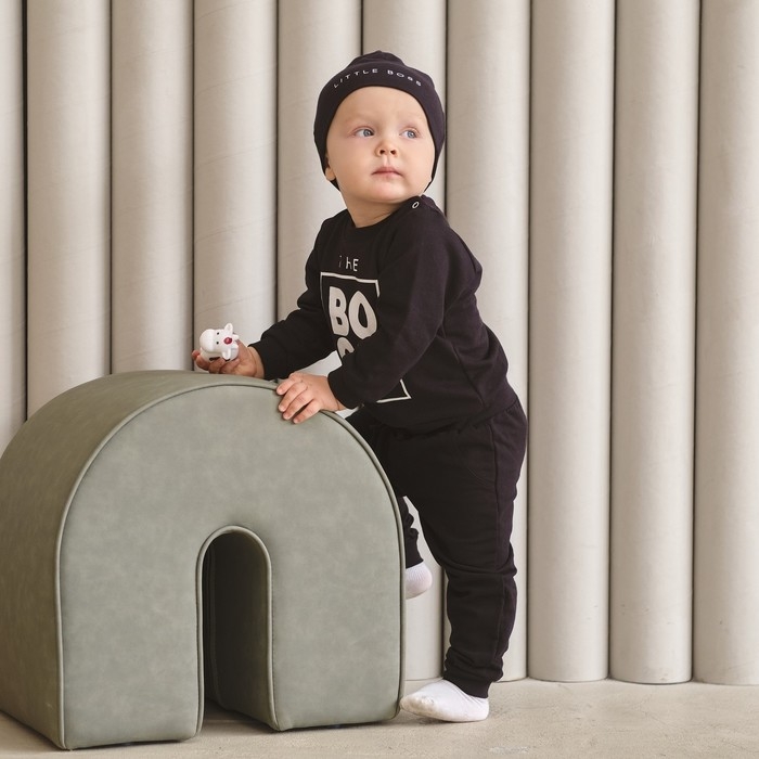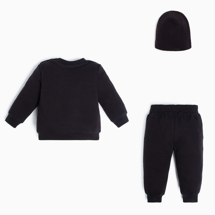 Комплект детский (джемпер, брюки, шапочка) Крошка Я "Little Boss", рост 74-80 см, цвет чёрный
