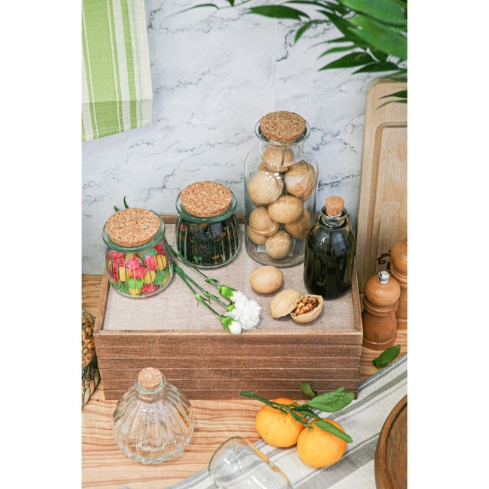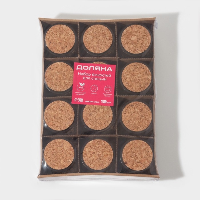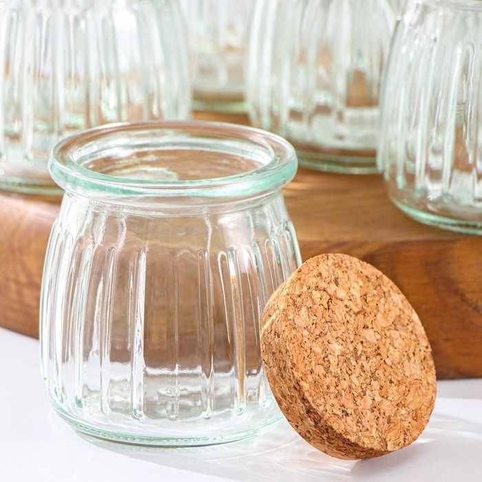 Набор баночек стеклянных для специй с пробковой крышкой Доляна «Парфе», 200 мл, 7,4×8 см, 12 шт