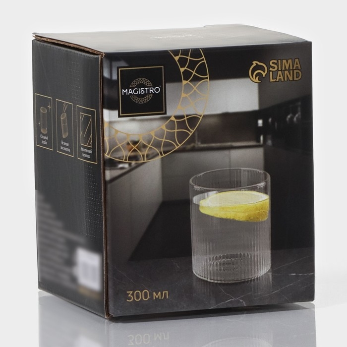 Стакан Magistro «Грани» объёмом 300 мл — это довольно интересный способ насладиться своим любимым напитком, как алкогольным, так и безалкогольным. Стакан имеет элегантный рельеф, прекрасно впишется в современный интерьер.