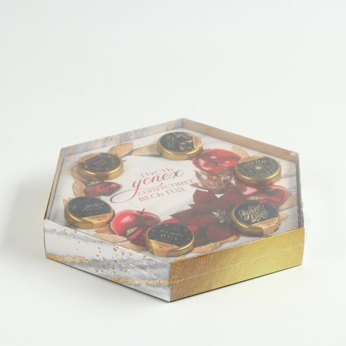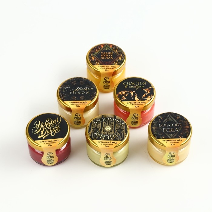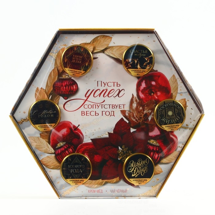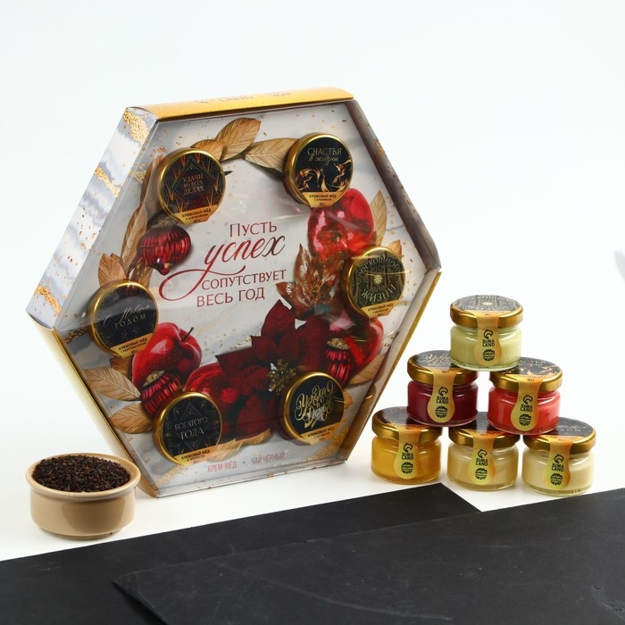 Подарочный набор «Новогодняя роскошь»: чай чёрный 50 г., крем-мёд 6 шт. x 30 г.