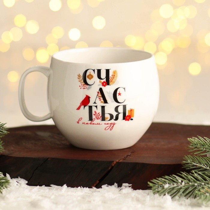 Керамическая кружка «Счастья» объёмом 600 мл — идеальный подарок для ваших друзей и близких в новогоднюю ночь.