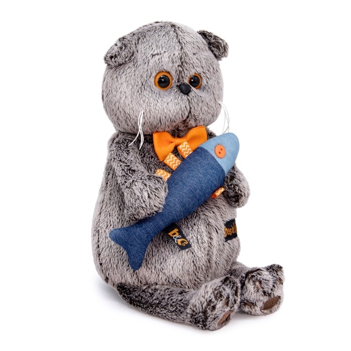 Мягкая игрушка «Басик с джинсовой рыбкой», 22 см