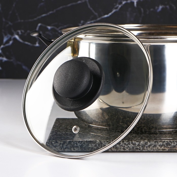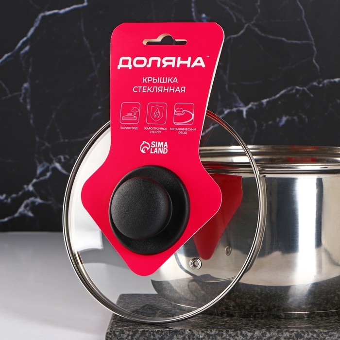 Крышка стеклянная для сковороды и кастрюли «Доляна», d=18 см, нержавеющий обод, пластиковая ручка