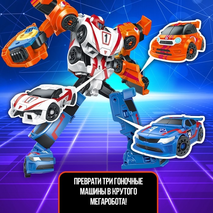 В глубинах космоса родилась идея о создании защитника галактики — Мегаробота. Три машинки наделили способностью трансформироваться и объединять свои силы, чтобы стать могучим роботом!