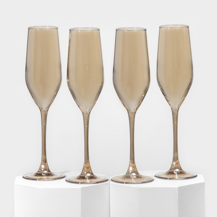 Набор стеклянных бокалов для шампанского «Золотой мёд», 160 мл, 4 шт