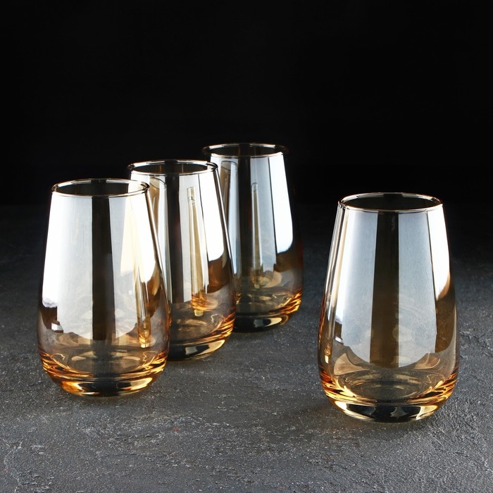 Набор высоких стеклянных стаканов «Золотой мёд», 350 мл, 4 шт