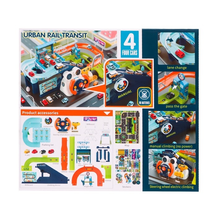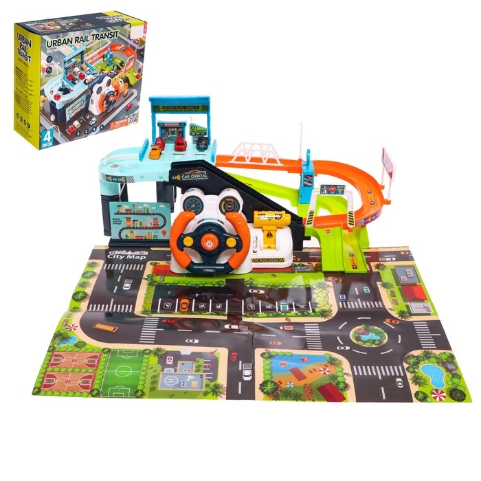 Парковка-автотрек «Город», с 4 машинами, свет и звук, работает от батареек