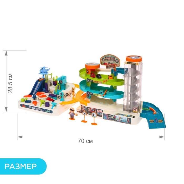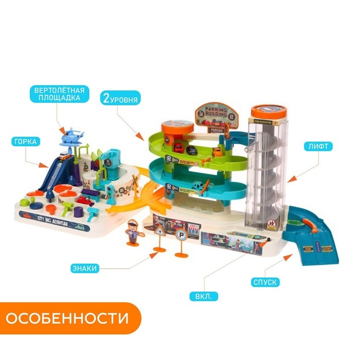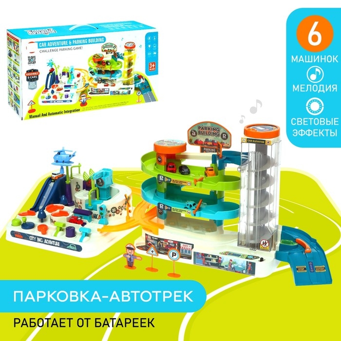 Парковка-автотрек «Город», с 6 машинами, свет и звук, работает от батареек