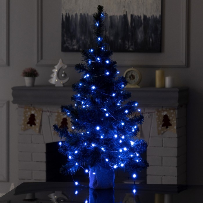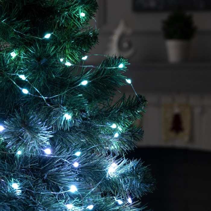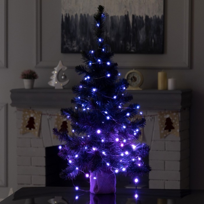 Гирлянда «Нить» 10 м с насадками «Игла», IP20, прозрачная нить, 100 LED, свечение синее, 8 режимов, 220 В
